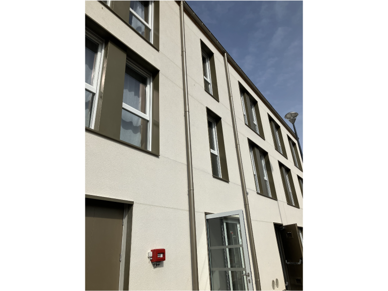Nos équipes ont décidé de réaliser une isolation thermique par l'extérieur en polystyrène expansé pour son côté résistant, idéal pour le site de Montferrat. L’isolation thermique par l’extérieur en polystyrène de 200 mm d'épaisseur offre une résistance thermique (R) de 5.71, ce qui permet de contribuer à une réduction significative des pertes thermiques, essentielle dans ce contexte d’hébergement collectif. Ce projet couvre une surface totale de 564 m².